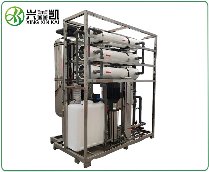 反渗透是一种借助于选择透过(半透过)性膜的工力能以压力为推动力的膜分离技术,当系统中所加的压力大于进水溶液渗透压时,水分子不断地透过膜,经过产水流道流入中心管,然后在一端流出水中的杂质,如离子、有机物、细菌、等,被截留在膜的进水侧,然后在浓水出水端流出,从而达到分离净化目的。