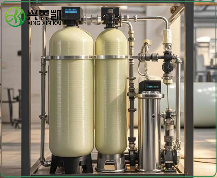工业软化水设备又称工业软水器,顾名思义就是用于工业上的软化水处理系统,有别于家用软水器,他是一种降低水硬度的装置。主要去除水中的钙、镁离子。在深井水或水源硬度较高的情况下,其作用是去除水中的钙、镁离子,使水中的钙、镁。离子还原包括三个部分,即离子交换部分、盐再生部分和控制部分。离子交换技术是软化系统的工作原理。它的主体是离子交换树脂。由于水的硬度主要是由钙和镁形成和表现出来的,所以一般使用阳离子交换树脂来去除Ca2+和Mg2+(水垢的主要成分)。) 代替它。